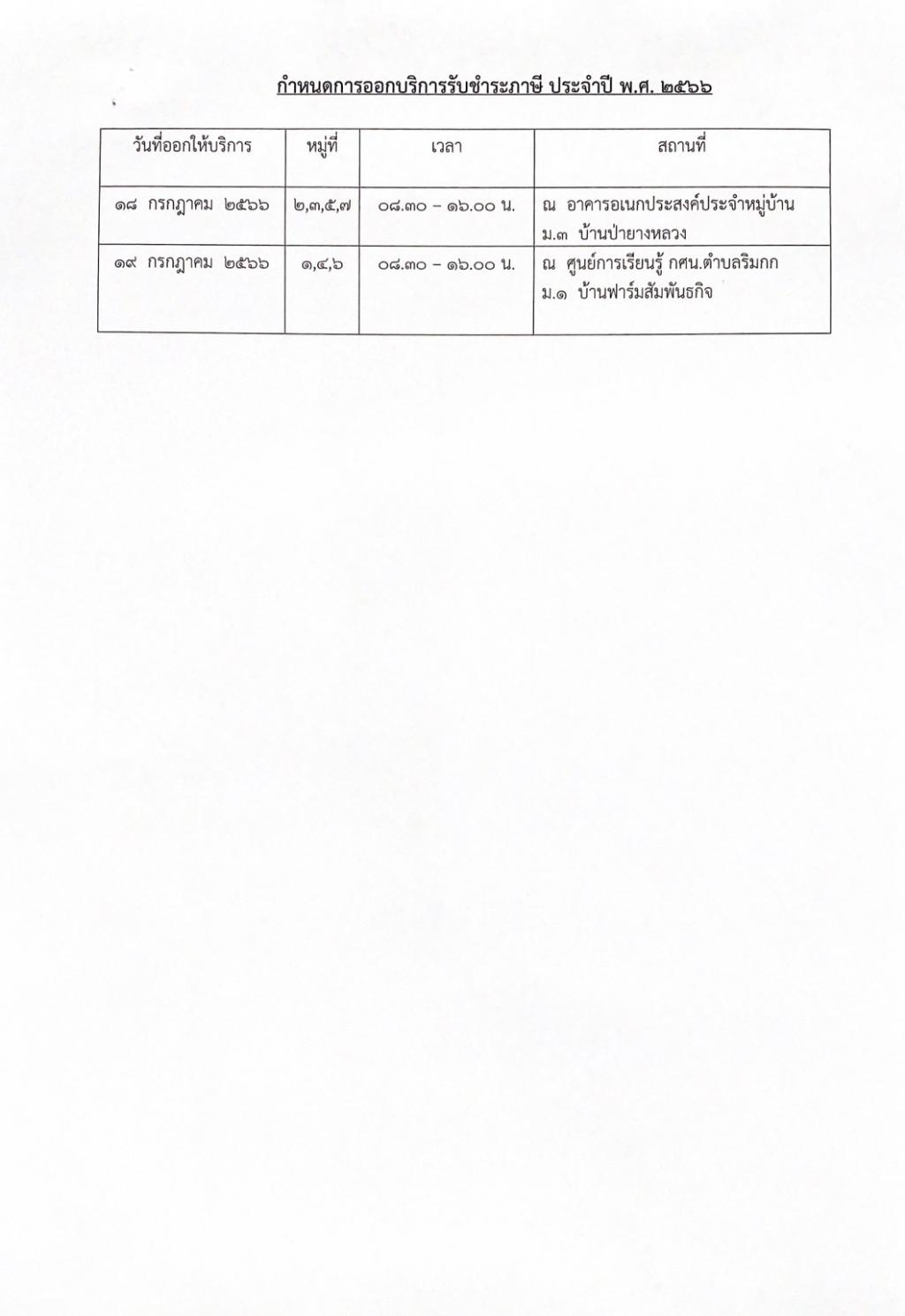 ประกาศองค์การบริหารส่วนตำบลริมกก เรื่อง ประชาสัมพันธ์โครงการบริการรับชำระภาษีนอกสถานที่ ประจำปี ๒๕๖๖