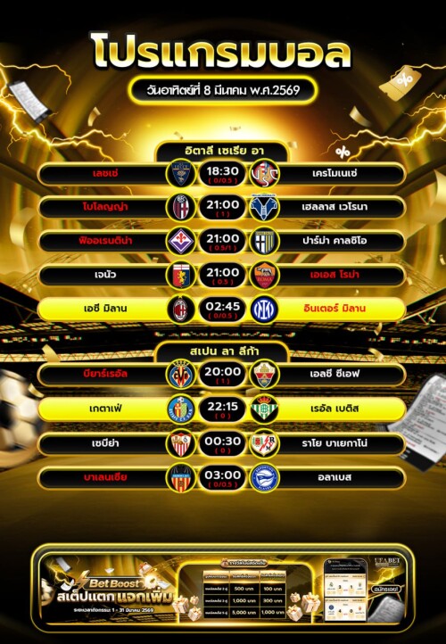 ผู้เล่นสามารถเลือกแทงได้ทุกวัน ทุกคู่ ตามโปรแกรมการแข่งขันจริง